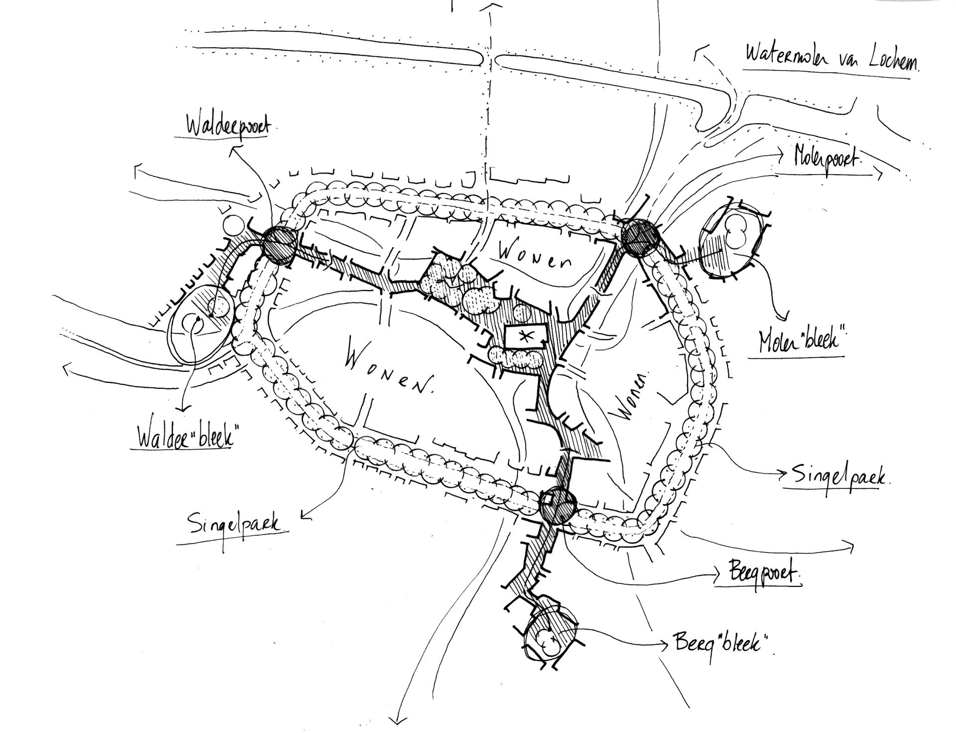 Het helder benoemen van de drie entrees en een duidelijke routing leidt ertoe dat er logische plekken ontstaan in de stad (de aanlooproutes) waar de zogenaamde compacte stad een plek kan krijgen. Deze drie entrees liggen tevens op de plek van de historische stadspoorten, de Molenpoort, de Bergpoort en de Walderpoort. Deze poorten en entrees dienen tevens als inspiratiebron voor een verdere thematisering van de binnenstad, waarbij de unieke eigenschappen van Lochem als Hanzestad een rol spelen. Ook diverse pleinen, welke door de aanloopstraten aaneen worden geregen als “pleinenreeks” kunnen een verbijzonderde functie krijgen.
