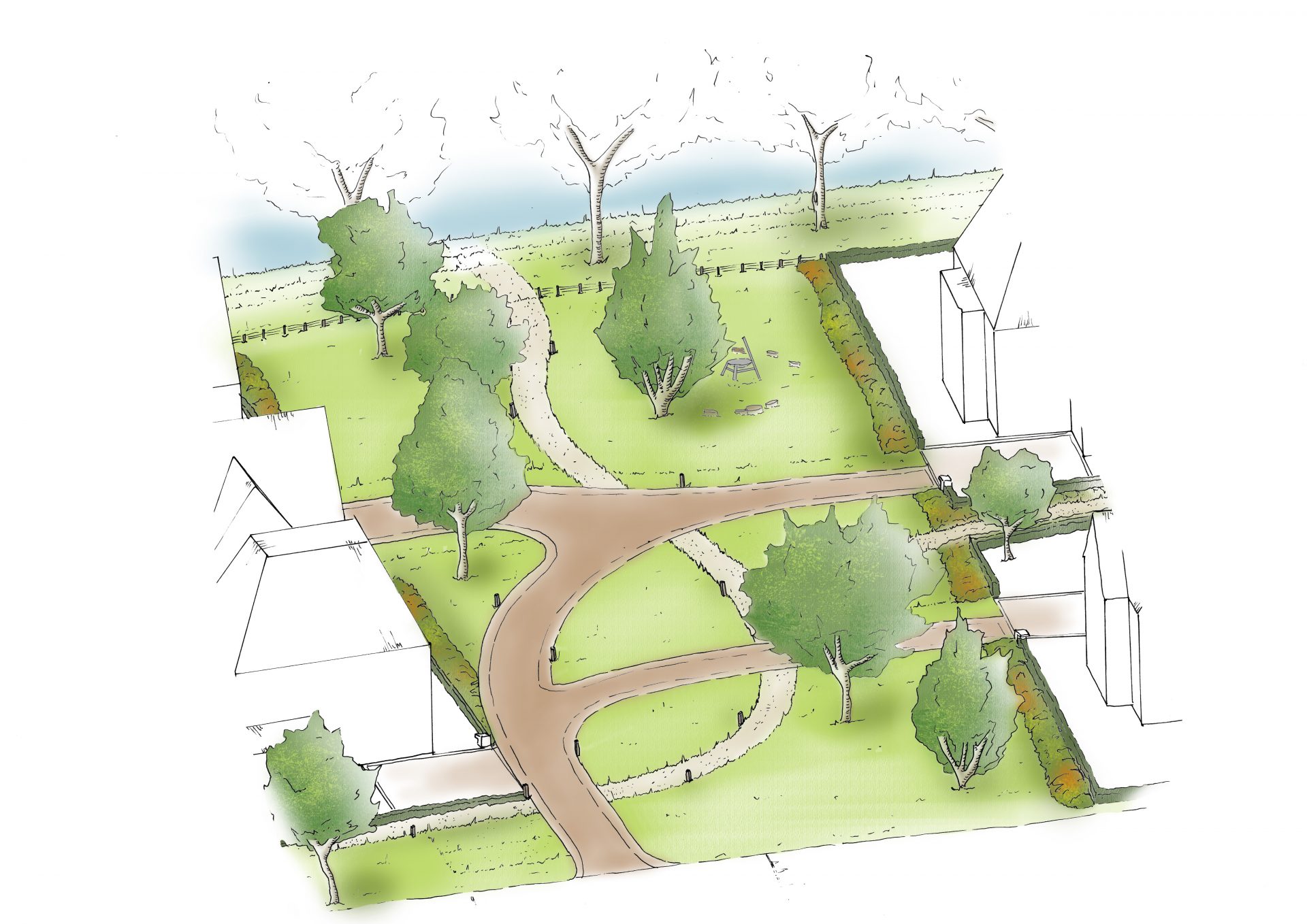 De bebouwing is opgedeeld in drie clusters met ieder een eigen woonsfeer, onderscheiden door stroken met openbaar groen. Hier ontstaan doorzichten, die nieuwe ruimtelijke relaties leggen tussen de Weijpoort, over de Oude Rijn en naar het bebouwingslint aan de Weijland noordelijk van de rivier. Deze relaties komen de ruimtelijke kwaliteit van het bouwplan ten goede.