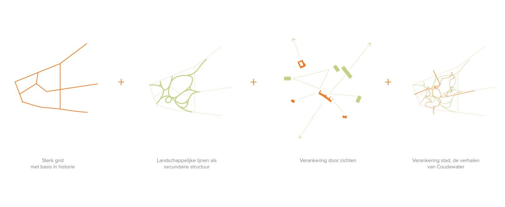 Het park, de monumentale bebouwing, de toegevoegde woningen en nieuwe verbindingen samen maken het landgoed Coudestaete. De nieuwe ingrepen worden verweven in het bestaande landgoed. De verhaallijn vormt hier een letterlijke vertaling van. Daarnaast is er uitgebreid gekeken naar een goede ontsluiting van het terrein en de nieuwe woonvelden.  Hieronder vallen ook de parkeervoorzieningen, die op meerdere manieren ingebed zijn in het park. Ook duurzaamheid is een belangrijk aspect. Water, energie, klimaatadaptatie en circulariteit zijn onderwerpen waarover is nagedacht. Alle elementen samen zorgen voor een zorguldige verankering van nieuw en oud in haar omgeving.