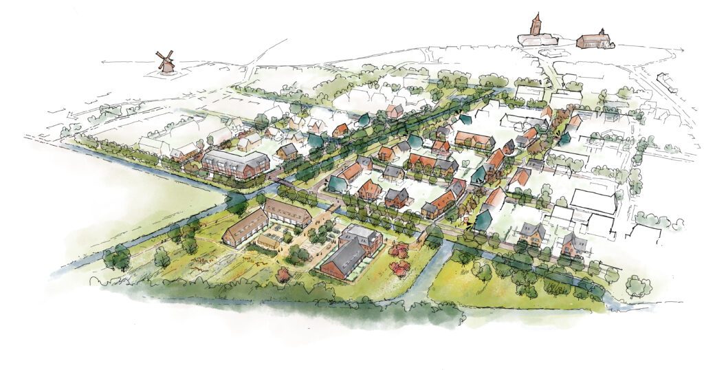 Wat Winss’n Park onderscheidt van andere uitbreidingswijken, is de sterke landschappelijke en dorpse identiteit die in elk aspect van de ontwikkeling doorklinkt. Vanaf de eerste contouren van het stedenbouwkundig plan is gekozen voor een integrale benadering waarin landschap, water, architectuur en sociale interactie samen een robuuste en aantrekkelijke woonomgeving vormen. Het project is dan ook niet alleen een antwoord op de woningvraag, maar een voorbeeld van hoe ruimtelijke kwaliteit en duurzaamheid hand in hand kunnen gaan in een dorpscontext.