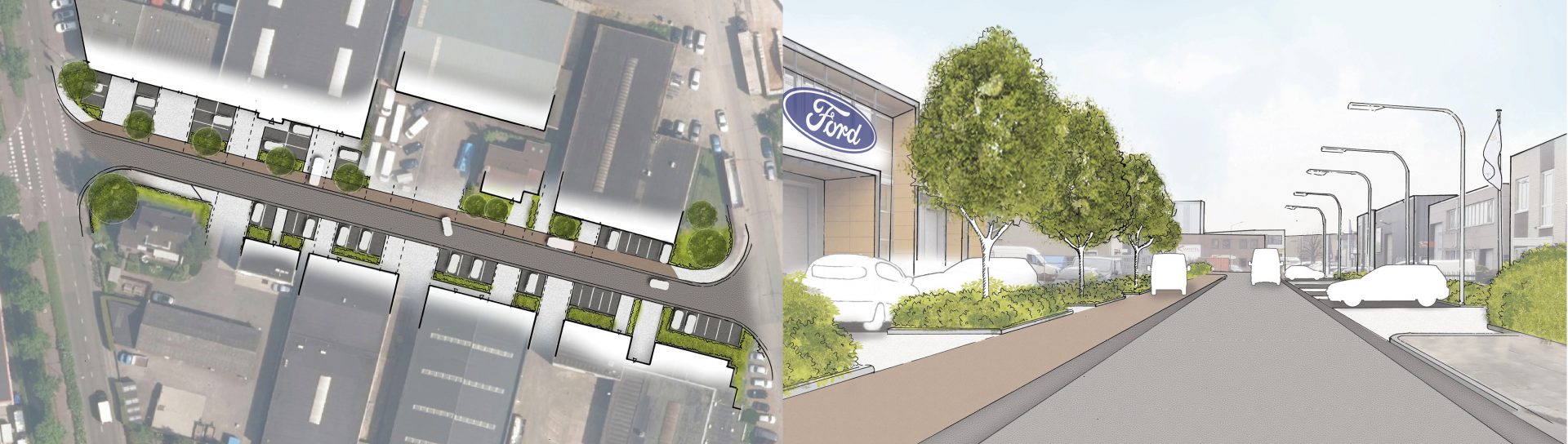 IMOSS werkt op twee schaalniveau’s aan het bedrijventerrein enerzijds stellen we een kansen en knelpuntenkaart op die in kaart brengt waar de ruimtelijke kwaliteit van het gebied een kwaliteitsimpuls kan krijgen. Op het lagere schaalniveau zijn we heel concreet bezig met een nieuwe inrichting van de Wagenmakersweg.